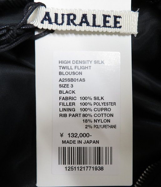 RI3J5725/未使用品 AURALEE HIGH DENSITY SILK TWILL FLIGHT BLOUSON A25SB01AS オーラリー フライトブルゾン