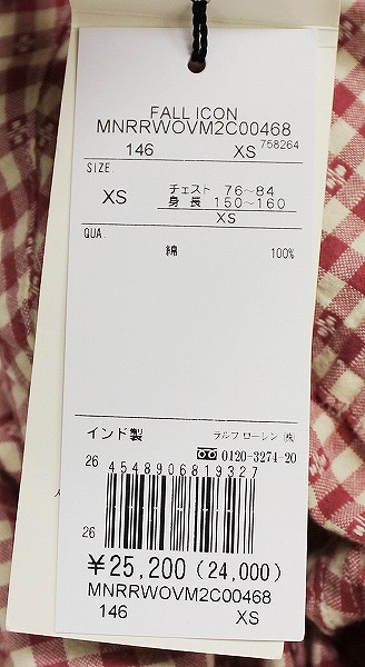 新品 RRL チェックウエスタンシャツ